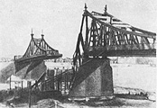 Старый волжский мост в Калинине, взорванный фашистами